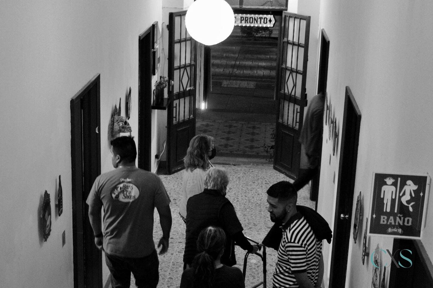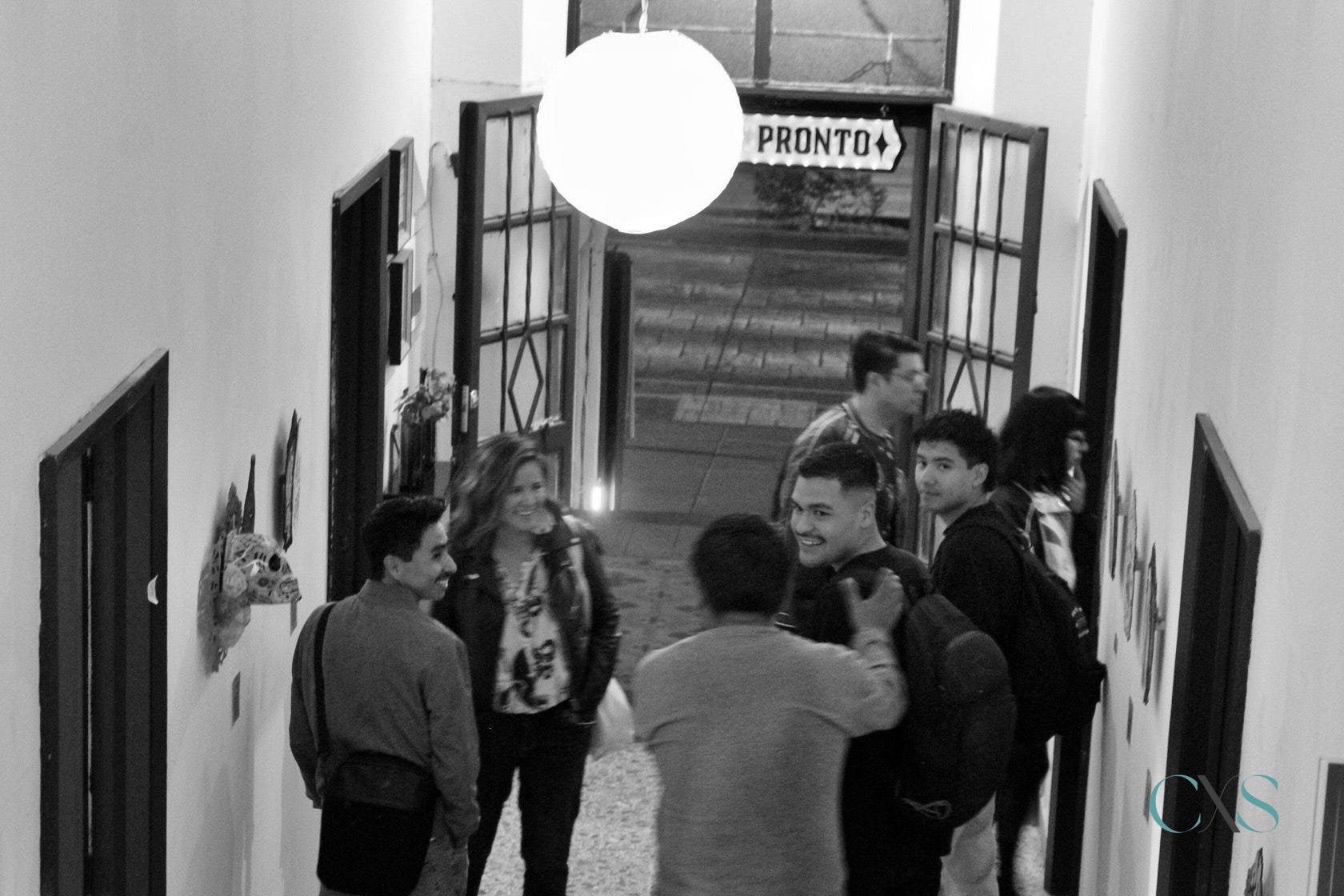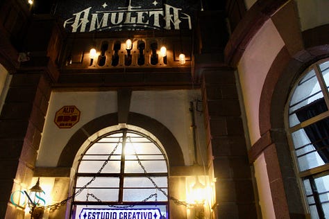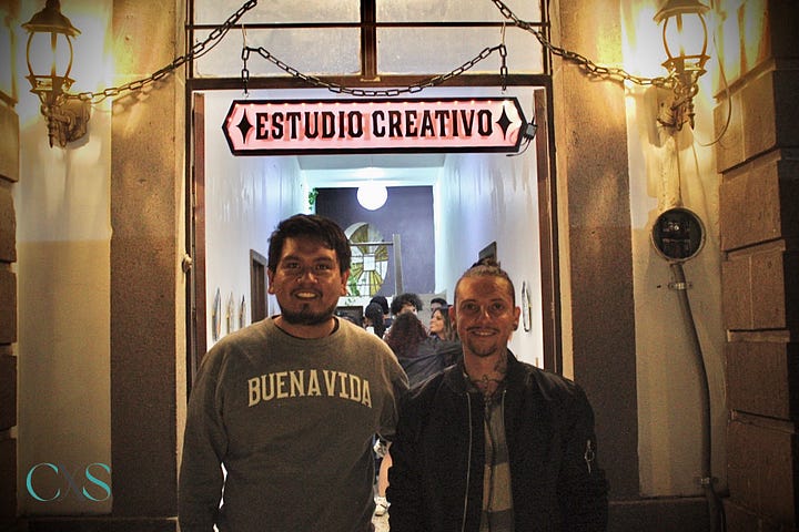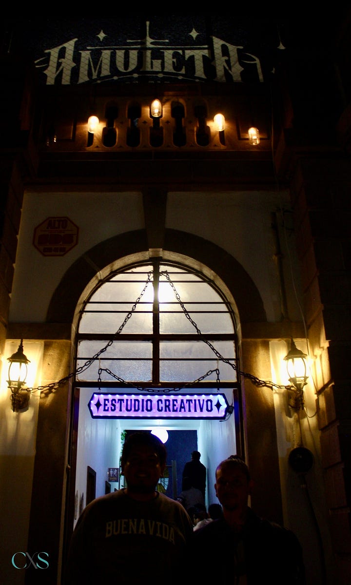 La cita fue a las 7 pm , nunca había visitado antes el estudio Amuleto , de verdad que interesante lugar, desconozco si solo es estudio de tattos o también un nicho creativo , pero se siente una muy buena vibra al entrar y aun mas porque en la entrada, a la par de algunas obras de la expo, se encontraba recibiendo a todos el buen Victor de Buena Vida.