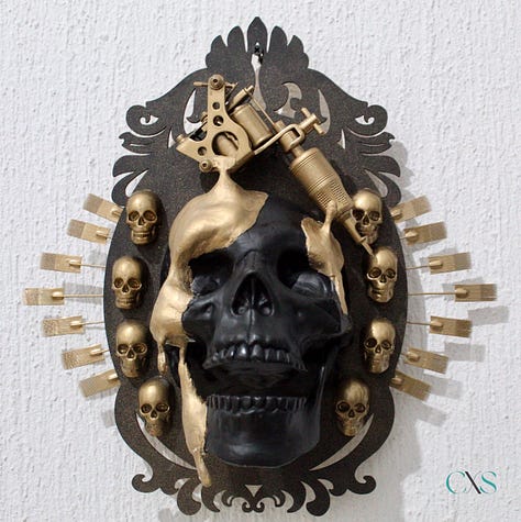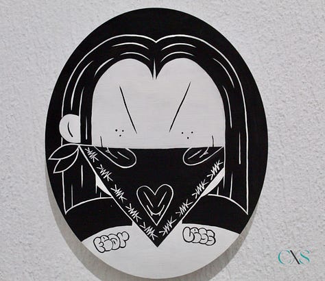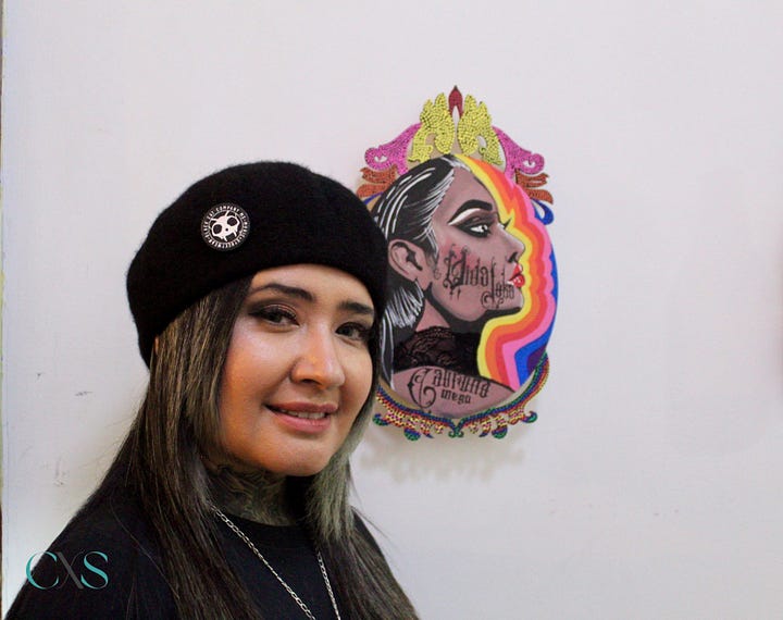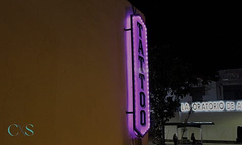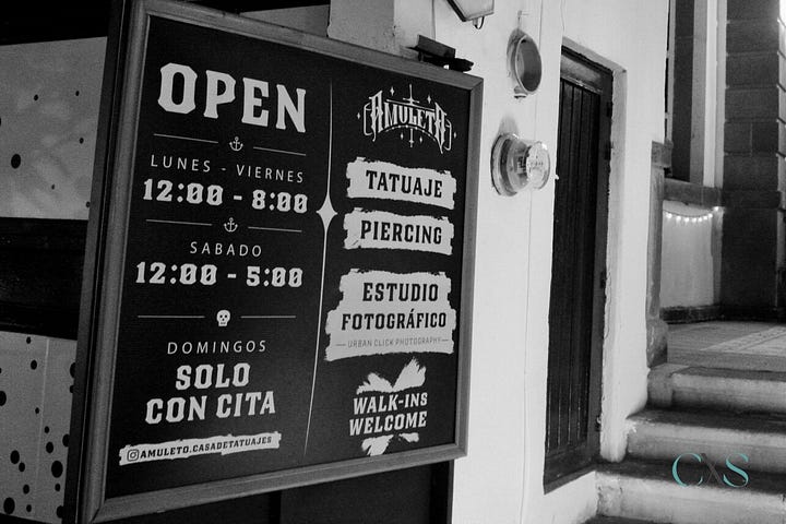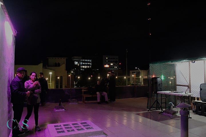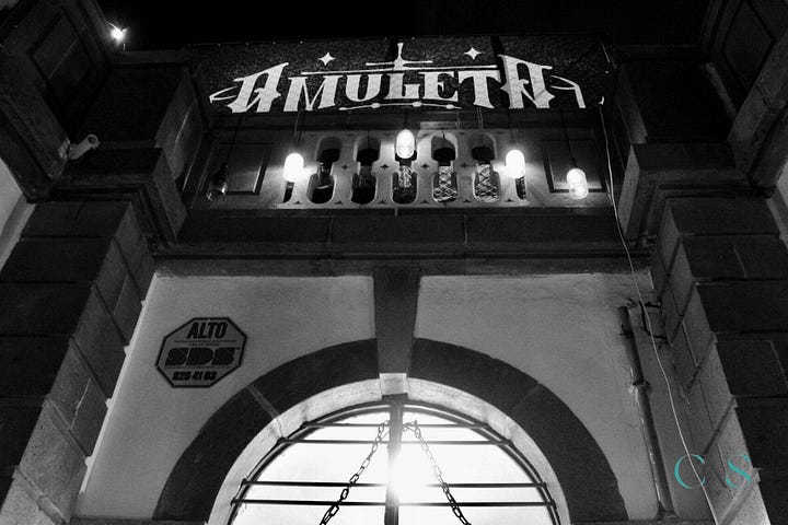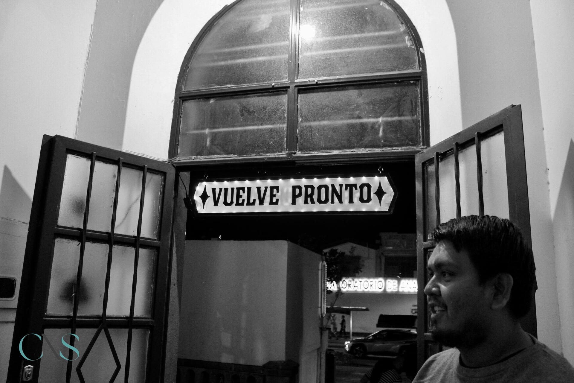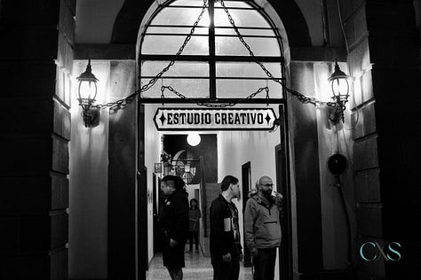 La cita fue a las 7 pm , nunca había visitado antes el estudio Amuleto , de verdad que interesante lugar, desconozco si solo es estudio de tattos o también un nicho creativo , pero se siente una muy buena vibra al entrar y aun mas porque en la entrada, a la par de algunas obras de la expo, se encontraba recibiendo a todos el buen Victor de Buena Vida.