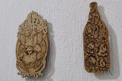 Sin habernos conocido antes entre el team de esta revista (catarxis) y los organizadores Victor y Jonatan, me (nos) recibieron muy bien y con la mejor de las energías y no era para menos, en seguida de la puerta de entrada tenían una exposición como pocas he visto; más de 40 expositores, todos con obras inéditas y solo una base de expresión: Caguamas.