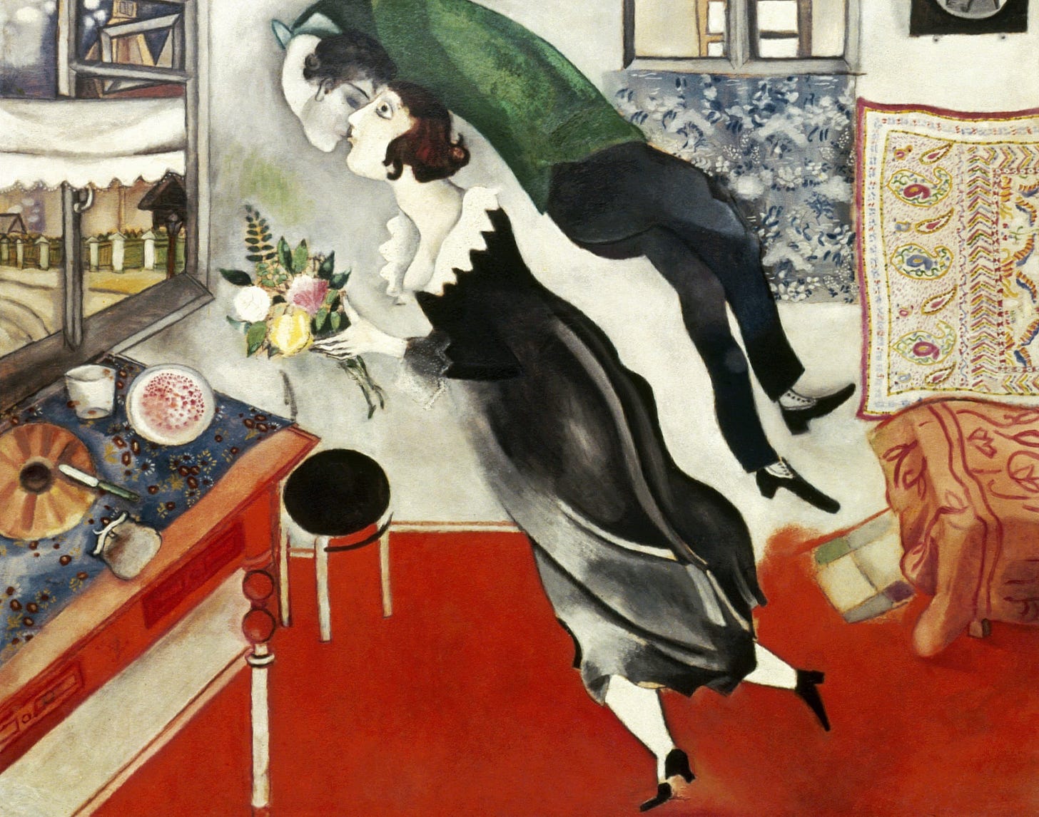 Este cuadro muestra una forma de expresar que los amantes pueden llevar su felicidad por los aires: si hasta dan ganas de salir volando con ellos.