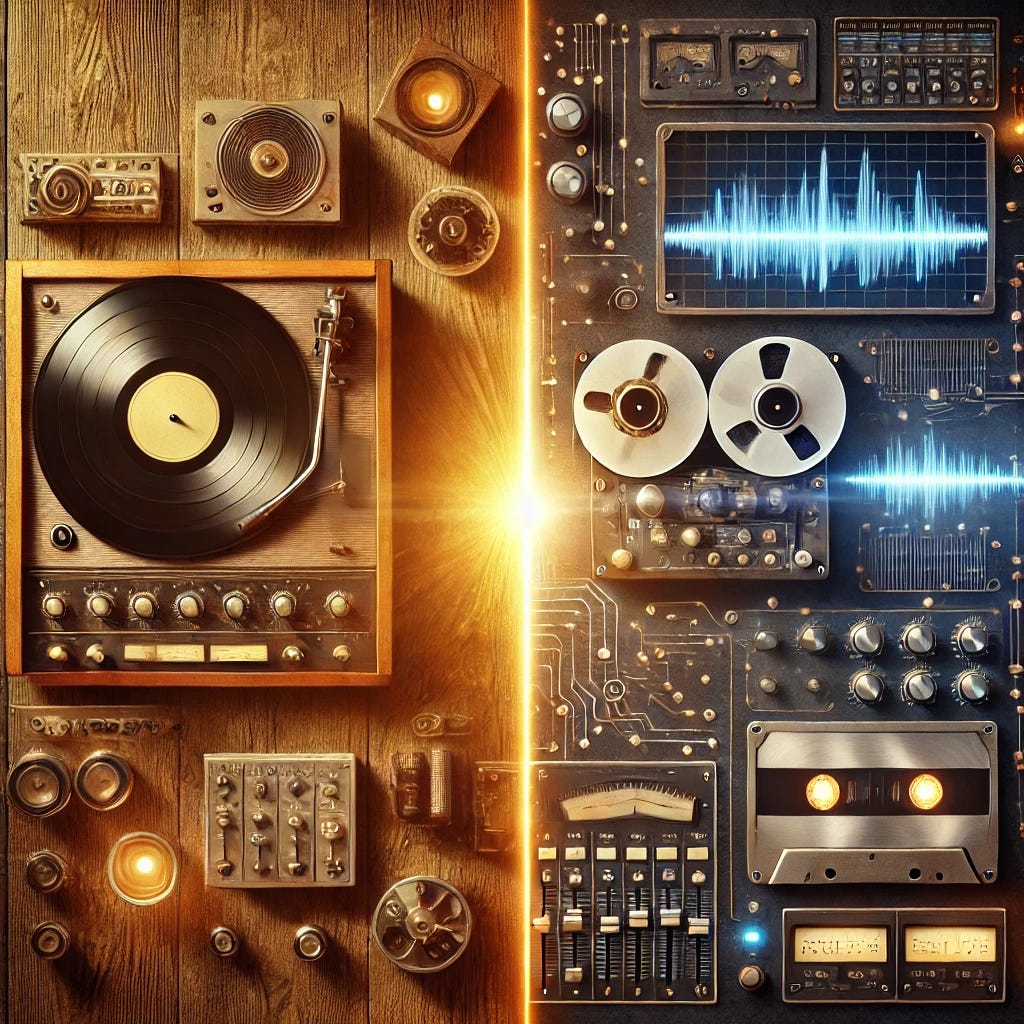La tecnología no se detiene y el siglo pasado estuvo lleno de avances increíbles en todos los ámbitos. Fue en materia del sonido donde en década cambiaba el paradigma a la hora de grabar y reproducir. En resumidas cuentas hoy podemos hablar de dos maneras de entender el sonido: “digital y analógico”. Siendo un debate a día de hoy sobre cual de las dos es mejor.