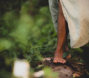 Camina en silencio sobre la tierra, sobre el pasto.