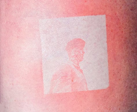 "Sunburnt" es un proyecto que desafía las nociones tradicionales de la fotografía al fusionar retratos fotográficos con la creatividad artística de Mailaender. La premisa del proyecto es aparentemente simple: Mailaender selecciona individuos y toma retratos de ellos, pero aquí es donde la singularidad comienza a emerger. En lugar de confiar únicamente en la fotografía en sí, Mailaender recurre a una técnica inusual pero fascinante: tatuar directamente sobre las fotografías.