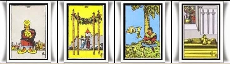 El numero cuatro en el tarot nos habla en general de estabilidad, el primero cuatro que vimos en la baraja es el arcano mayor, El Emperador y el nos da una excelente idea de lo que vamos a ver en los palos de arcanos menores.