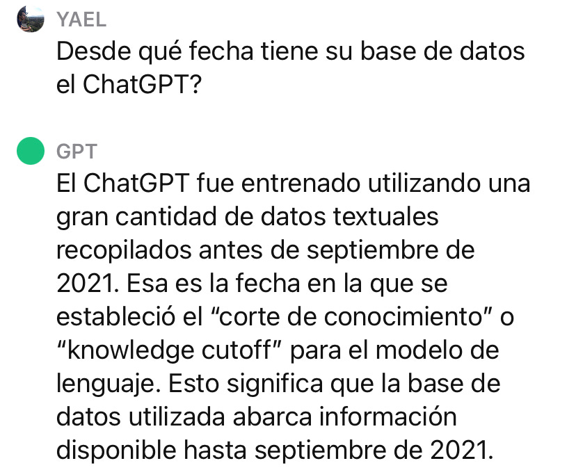Y: Desde qué fecha tiene su base de datos el ChatGPT?