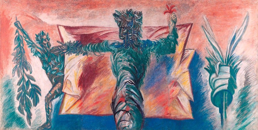 Orozco realizó este mural para un amigo sin un significado definido de por medio y al finalizarlo dejó que le diera la interpretación que quisiera. De este modo, nace la interpretación más popular del mural, donde nos muestra a un personaje femenino al centro que está rodeado de naturaleza que representa la primavera y a un lado de esta, se encuentra un personaje masculino rodeado de flora seca, representando al invierno. Mostrando cómo es que la primavera está invitando a bailar al invierno.