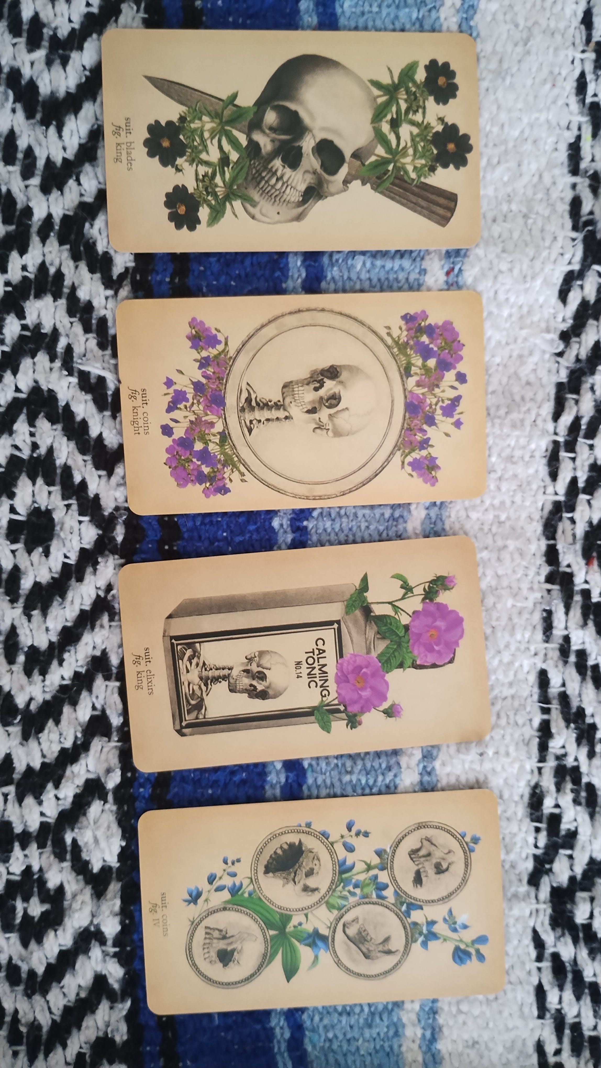 Abrimos la tirada con el rey de espadas y eso nos viene a comunicar que en el campo mental vamos a estar disfrutando de una claridad y una asertividad que probablemente no habíamos sentido en los meses pasados, El rey de espadas viene acompañado del caballero de oros y eso todo está muy padre porque con esta claridad mental que nos trae el rey de espadas, El caballero de oros va a tener la iniciativa para ejecutar el plan pensado, por ejemplo, no solo vas a tener la claridad mental de pensar un buen plan, también vas a tener la iniciativa de tomar apuntes, estructurar y empezar a tomar acción. Enseguida viene el rey de copas a decirnos que vamos a estar en un lugar emocional bastante firme en donde no nos vamos a dejar gobernar por la emoción errática, sino que la vamos a poder usar a nuestro beneficio de una forma muy armoniosa y por último el 4 de oros que cierra esta tirada nos dice que vamos a tener la conciencia de un buen manejo de dinero y nos va a permitir invertir en cosas importantes para nuestro crecimiento, desarrollo y cumplimiento de metas.