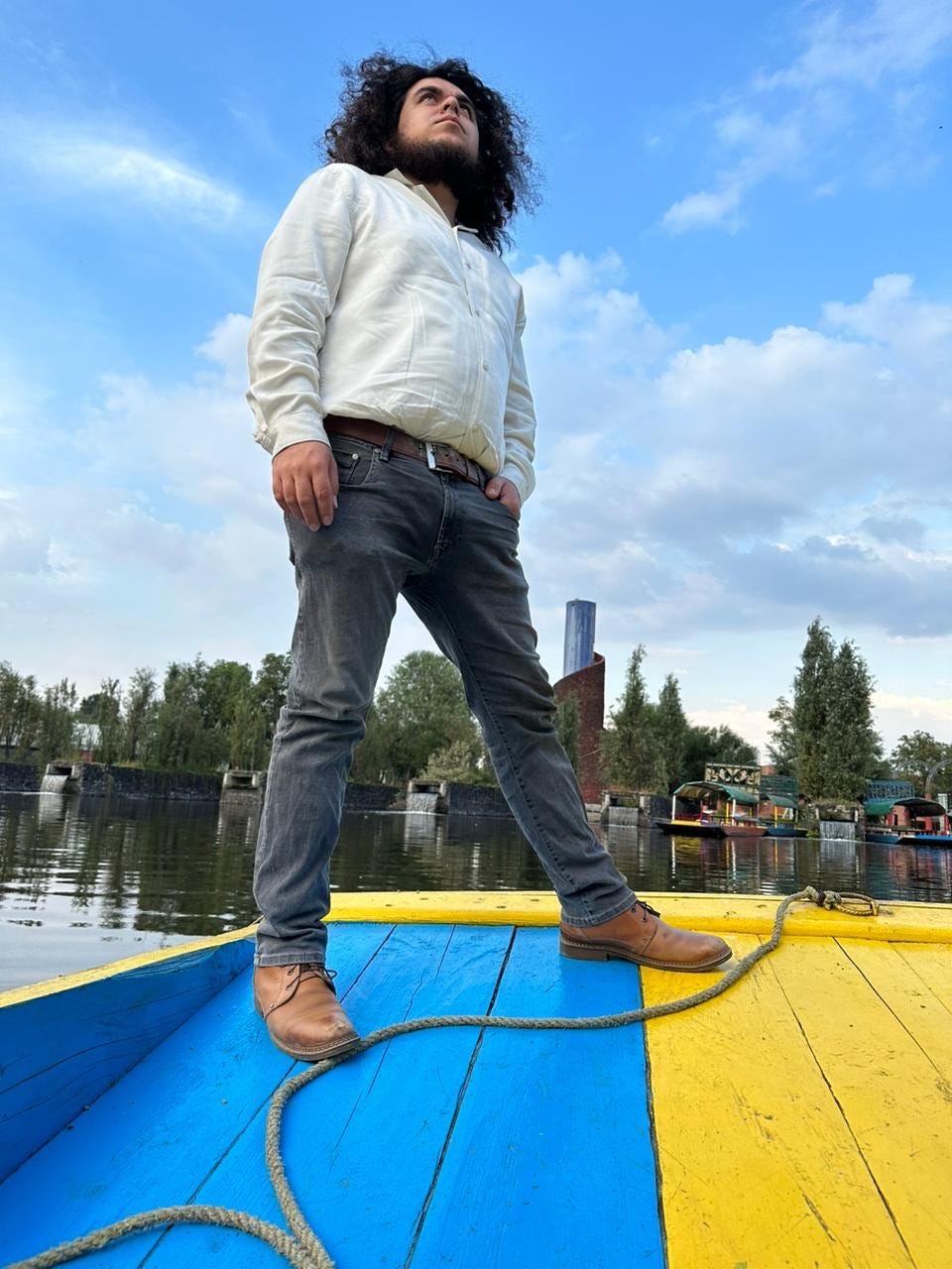 Cantautor nacido en Iztapalapa, Ciudad de México. A sus 32 años de edad todavía sueña con cambiar el mundo. Estudió composición en música popular contemporánea y la música que crea la denomina “pop chido”, por la mezcla de géneros como el blues, folk, funk y rock.