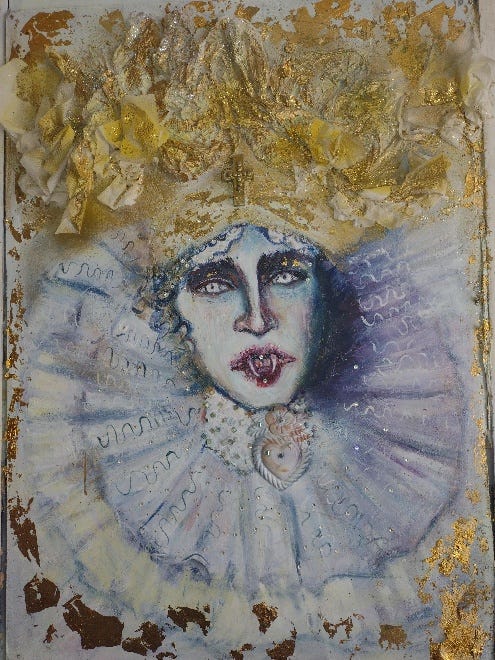 Está obra representa, el dorado de mi ser, una vampiresa pero con la belleza del interior de mi mente.