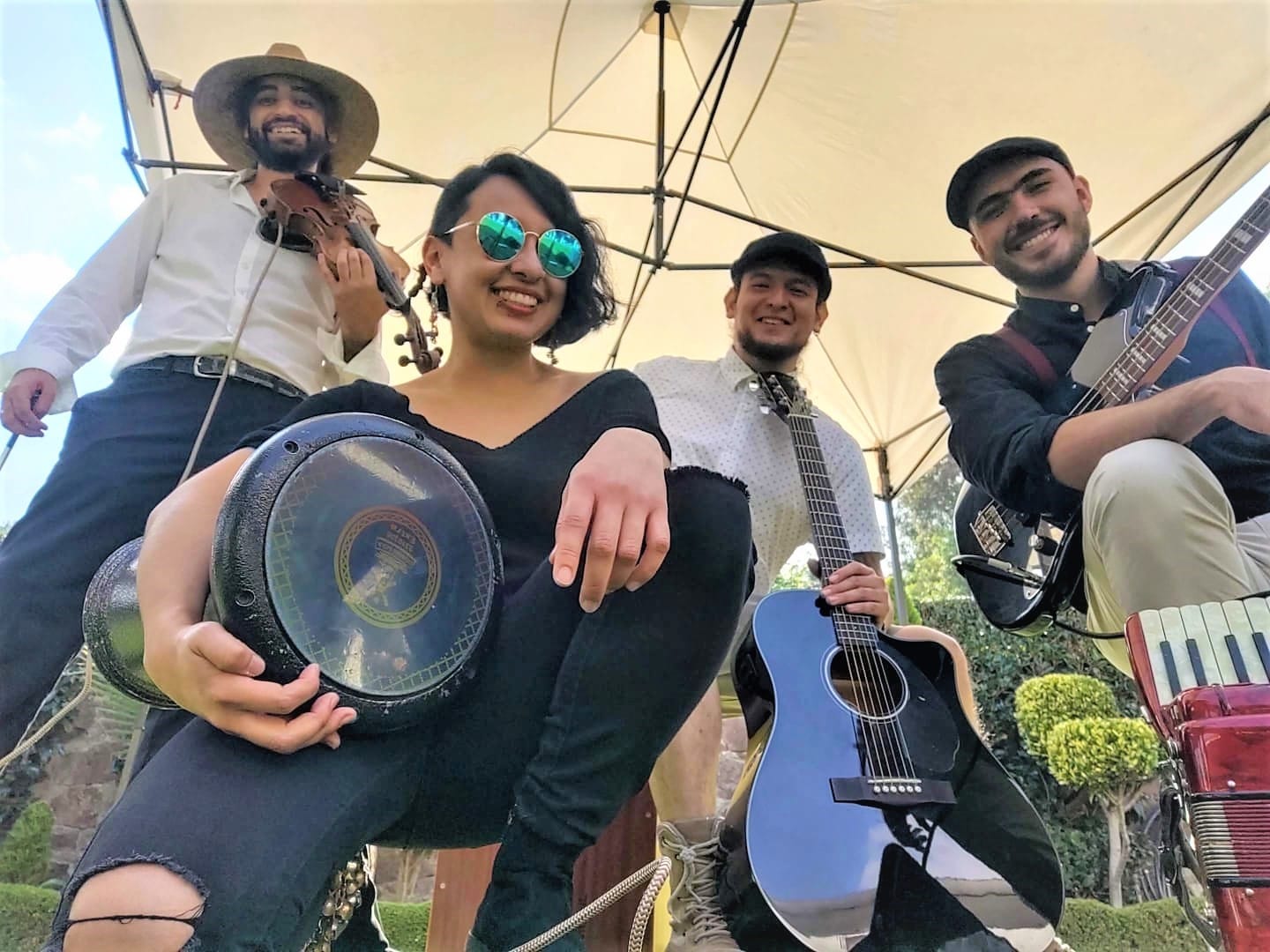 El grupo se conforma por Diego Prado en el violín, Bóris Béla en el acordeón y guitarra, Carolina Reyes en las percusiones y André Izquierdo en el bajo.