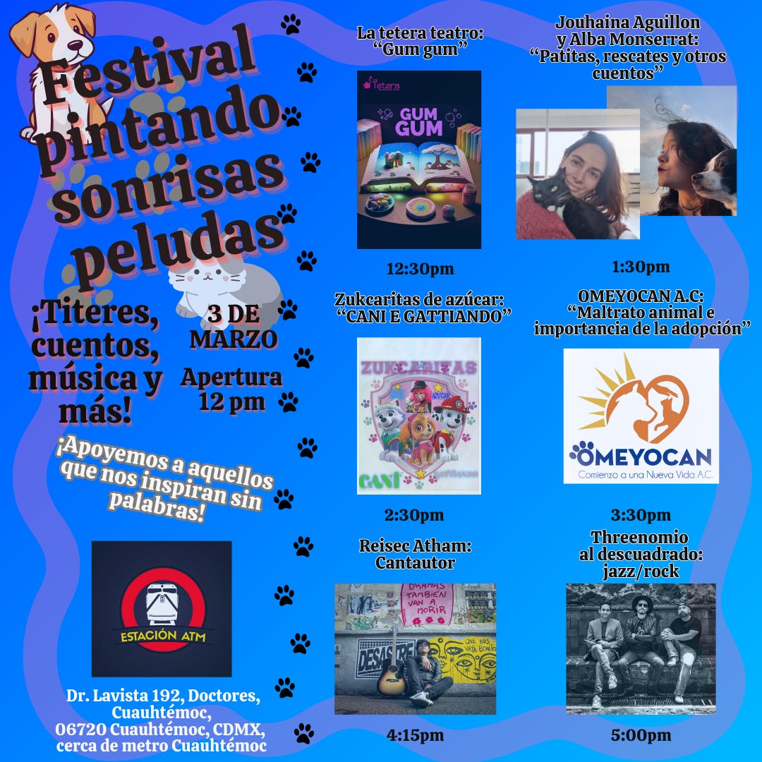 El 3 de marzo se llevará a cabo el festival “pintando sonrisas peludas”, una iniciativa que busca apoyar a la fundación Omeyocan, misma que se encarga del rescate de animalitos en situación vulnerable.