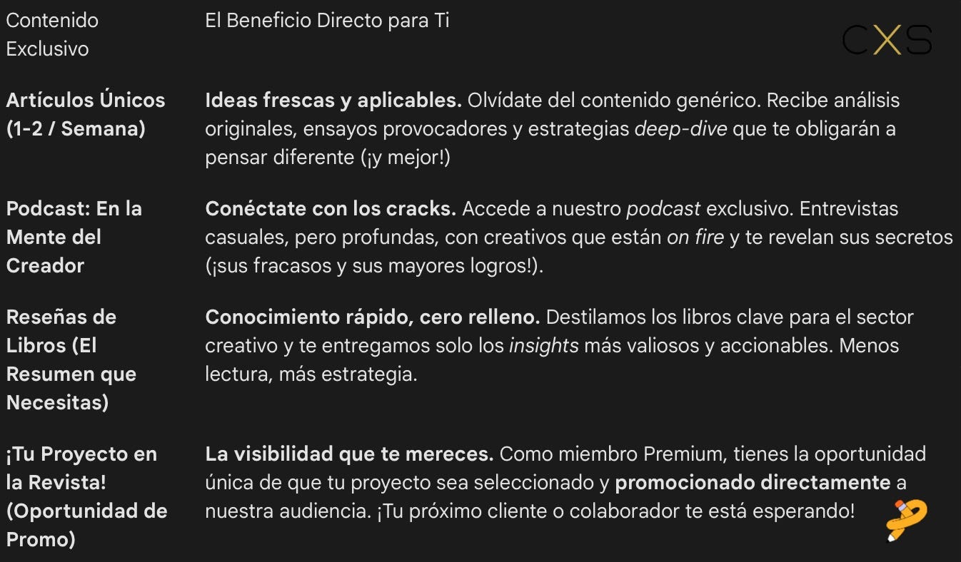 La membresía Premium no es solo un newsletter más; es tu pase VIP a la información que realmente cambia el juego y, lo mejor de todo, a la visibilidad que mereces.
