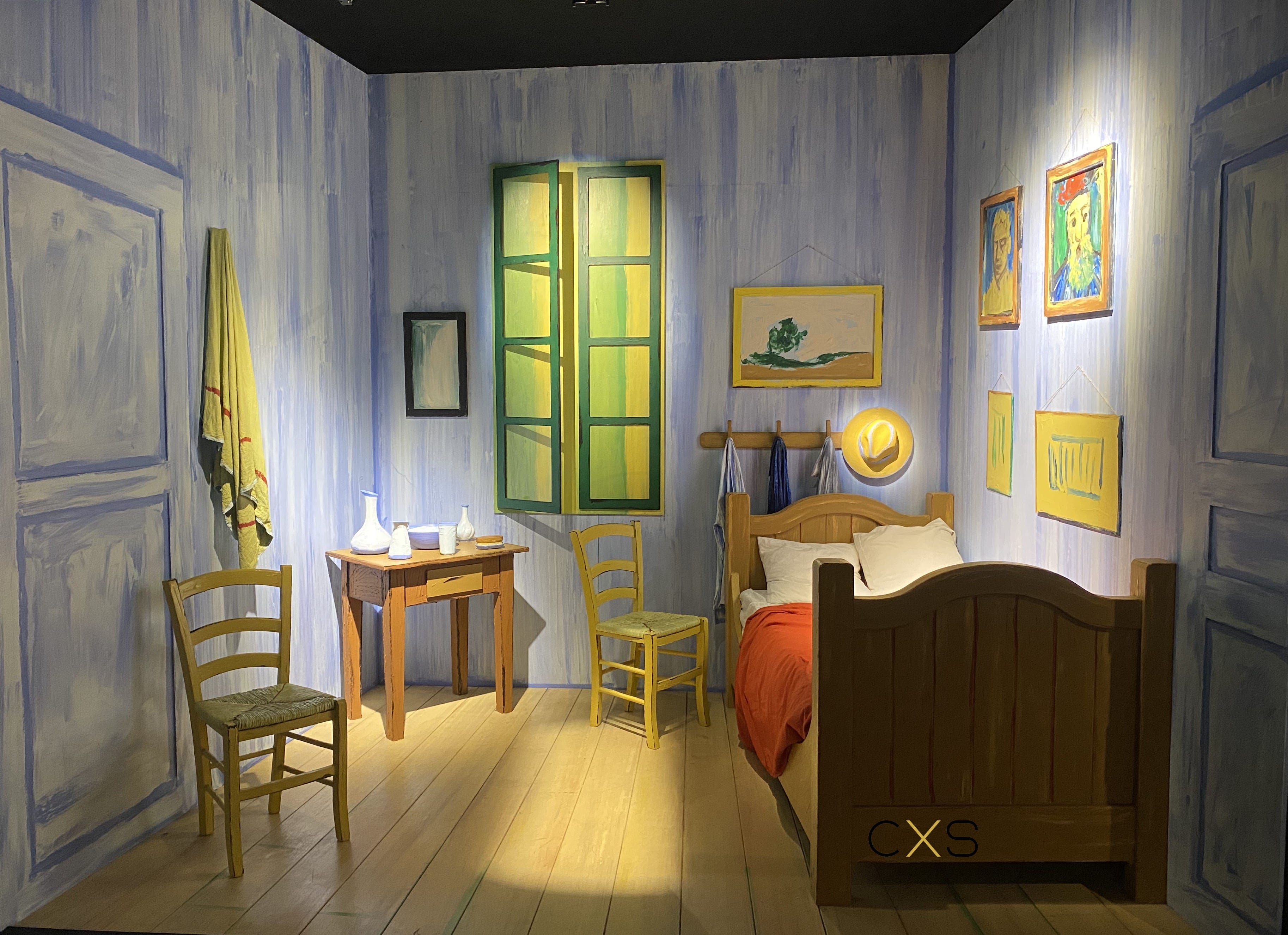 Después de recorrer el mercado, llegas a la bienvenida a la exposición. Pasas de un espacio muy iluminado a un entorno donde las luces se atenúan suavemente, sincronizadas con el soundtrack: música clásica acompañada por la voz de un narrador que simula ser Van Gogh. Sus frases, recuerdos y reflexiones van guiando al visitante, creando una atmósfera que combina la narrativa de su vida con la emoción de su obra.