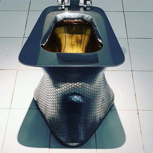 • The Toilet (2017): En colaboración con Santiago Sierra, Okón crea una escultura funcional que replica la forma del Museo Soumaya de la Ciudad de México como un inodoro de lujo. Esta pieza aborda la relación entre el arte, el poder corporativo y la desigualdad económica.